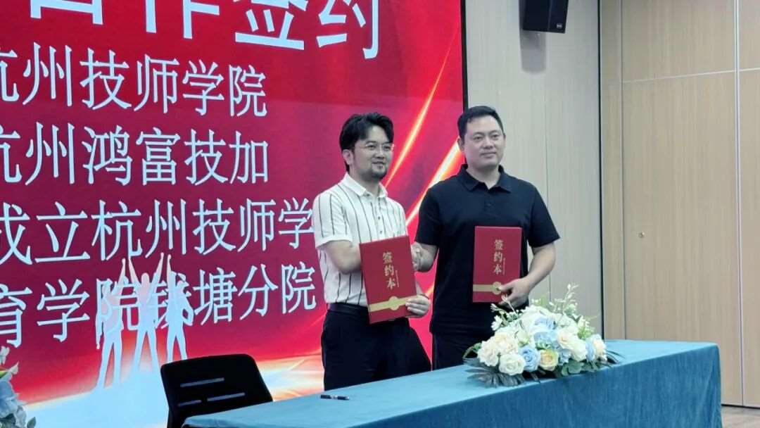 就在签约的前一天(7月14日),杭州技师学院与鸿富技加学校在钱塘区人社局见证下强强联手,成立“杭州技师学院继续教育学院钱塘分院”,为学员提供的成长引擎:
