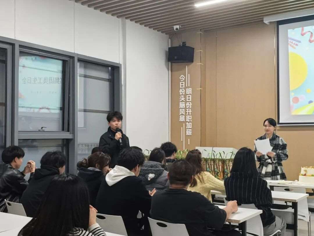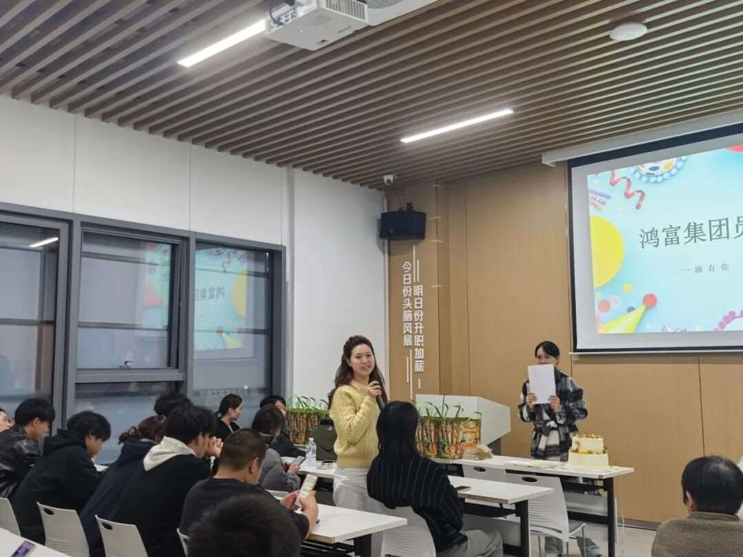 活动一开始,寿星们轮番上台自我介绍。有的幽默风趣,有的真诚朴实,大家不仅分享了所在岗位,也聊起兴趣爱好。笑声与掌声此起彼伏,原本不熟悉的同事也在轻松的氛围中迅速熟络,展现了鸿富同事们充满活力、开放包容的文化气息。