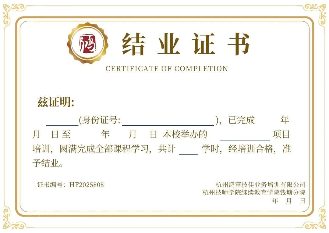 ●结业证书(鸿富技加与杭州技师学院双重认证)