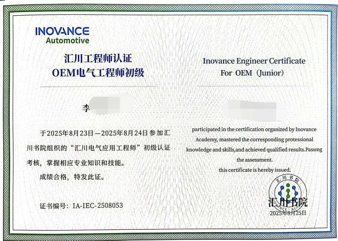 ●工程师认证(汇川等知名技能证书)